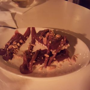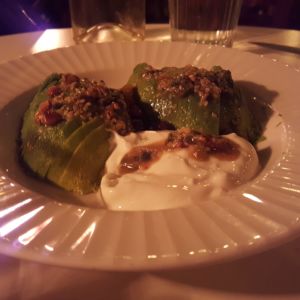 Am ersten Abend bestellten wir die hausgemachten Auberginen-Pommes, Avocado mit Mozarella und ein Tagesgericht (ich glaube eine mit Fleisch gefüllte Paprika). Das Essen kam schnell und uns überzeugten insbesondere die Auberginen-Pommes. Zum Nachtisch bestellten wir noch ein veganes Dessert mir Reiswaffeln, Erdnüssen und Schokolade.