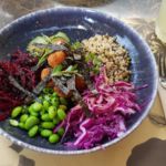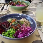 Ich besuchte das terrárea an einem Dienstag Mittag gegen 14 Uhr. Wir mussten kurz warten und bekamen dann einen Tisch. Wir bestellten jeweils das Mittagangebot bestehend aus Suppe, einem Gericht (Bowl oder Toast) und einem Getränk. Die Suppe bestand an diesem Tag aus Zucchini und Sellerie. Wir entschieden uns für die Bowl mit Tofu, Quinoa, Rote Beete, Kohl, Edamame und Gurkensalat. Dazu gab es eine Limonade.