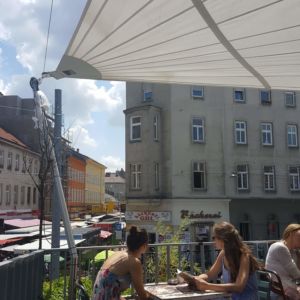 Das WIRR ist ein Restaurant und Bar in Neubau, im 7. in Wien. Auf dem lebendigen Yppenplatz findet man hier Frühstück, Mittag- und Abendessen. Abends wird hier auch gefeiert! Die Speisekarte bietet abwechslungsreiche und kreative Frühstücksoptionen, internationale Speisen und Kuchen. Alle Gerichte werden ausschließlich mit nachhaltigen Bioprodukten zubereitet. Im Sommer kann man oben auf der Dachterrasse mit Blick auf den bunden Wochenmarkt (zumindest am Samstag) oder unten auf der Terrasse sitzen. Mit vielen kleinen Tischen und Stühlen aus Metall, Pflanzen, Sonnensegel, Bambusbar hat das WIRR einen feshen Stil, der an Berlin oder Istanbul erinnert.