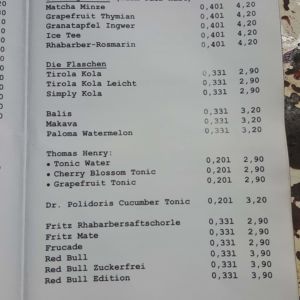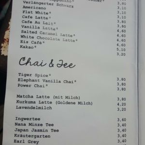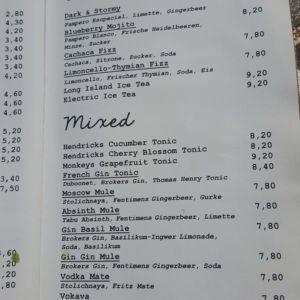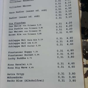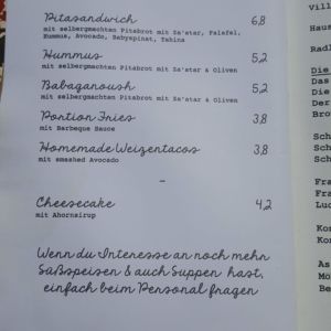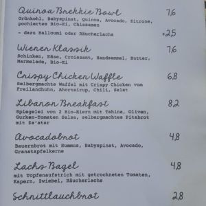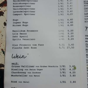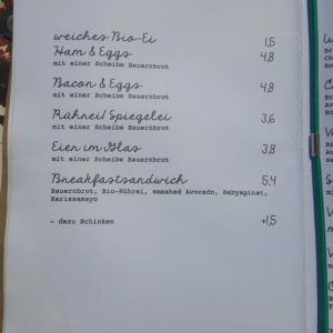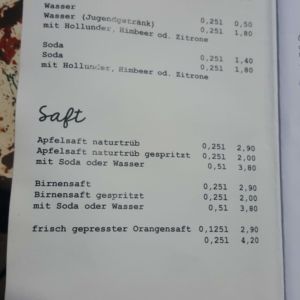Auszug aus der Speisekarte (Stand 26. Mai 2018):