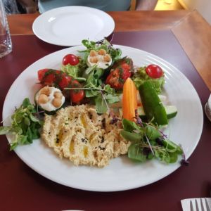Das Restaurant Vegan’s Prague befindet sich auf der Kleinseite von Prag. Es ist ein komplett veganes Restaurant mit traditionell böhmischen, aber veganen Gerichten und einer Auswahl an internationalen Speisen. So findet man auf der Speisekarte Vorspeisen wie Hummus oder Guacamole, tschechische Spezialität wie Goulash oder Kichererbesen-Quinoa-Puffer mit Tomatensoße und böhmischen Knödeln und internationale Gerichte wie Zucchini-Lasagne oder Burger. Als wir dort waren, hat es stark geregnet. Es soll aber eine Terrasse mit tollem Ausblick geben.
