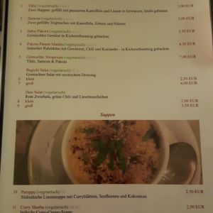 Auszug aus der Speisekarte (Stand 04. Februar 2018):