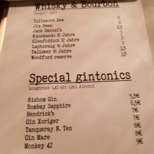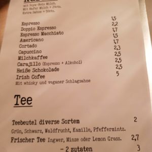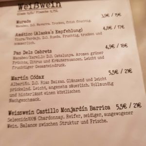 Auszug aus der Speisekarte (Stand 15. Januar 2019):