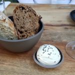 Wir besuchten das Restaurant an einem Mittwoch Abend gegen 19:00 Uhr und hatten vorab einen Tisch für draußen reserviert. Wir entschieden uns beide für das vegetarische Menü: Ich vier Gänge (1,2,3 & 5), meine Begleitung 5 Gänge. Dazu Weinbegleitung, wobei ich mich für die halbe Variante entschied – also immer nur ein halbes Glas.