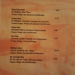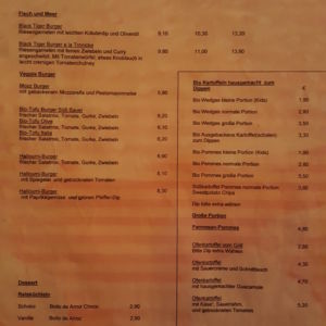 Auszug aus der Speisekarte (Stand 15. Februar 2018):