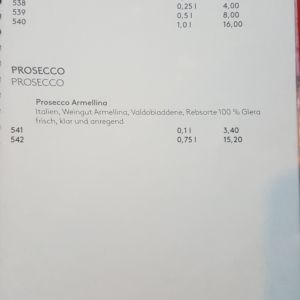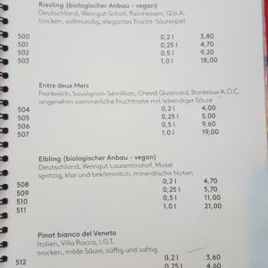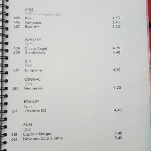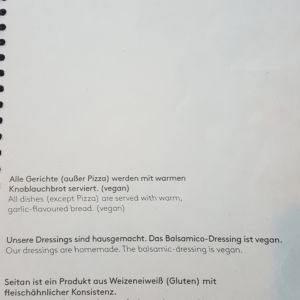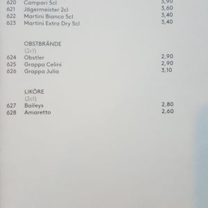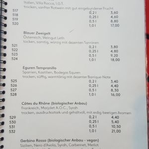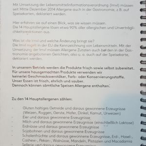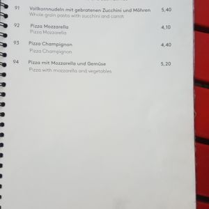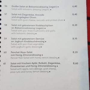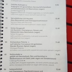 Auszug aus der Speisekarte (Stand 18. April 2018):