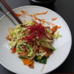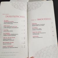 Wir besuchten das Restaurant an einem Freitag Abend um 18:30 Uhr und hatten vorab einen Tisch auf der Terasse reserviert. Wir bestellten zunächst hausgemachte Limonaden und die Sommerrollen vorab. Als Hauptspeise entschied ich mich für die Mont Bowl: Gedämpftes Saisongemüse mit Tofu, Sojabhonen und -sprossen mit Hoisin-Chili Sauce und Udon-Nudeln. Meine Begleitung bekam die Pho Xao: gebratene Reisbandnudeln mit Tofu, firschem Gemüse und Kräutern.