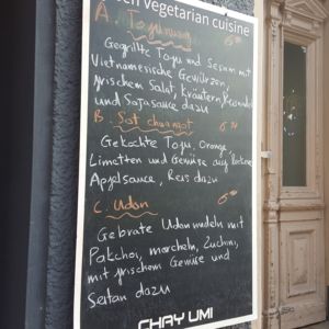 Das Chay Umi ist ein veganer Vietnamese im Stadtteil Prenzlauer Berg. Inspiriert von der traditionell vietnamesischen Küche werden hier alle Gerichte vegan zubereitet. Auf der Speisekarte stehen Suppen – auch eine vegane Pho Suppe -, Sommerrollen, Curries und Reis- und Nudelgerichte, teilweise mit Tofu, Seitan oder Sojafilet und viel Gemüse.