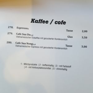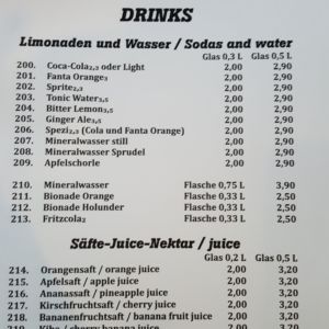 Auszug aus der Speisekarte (Stand 11. April 2018):