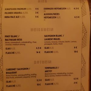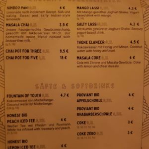 Auszug aus der Speisekarte (Stand 27. Mai 2019):