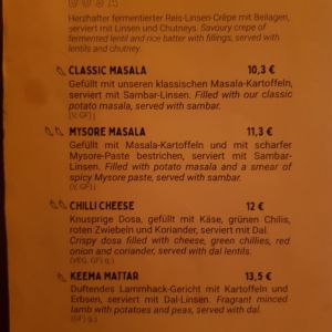 Speisekarte Chutnify: Samosa, Currys und Dosa