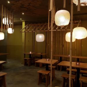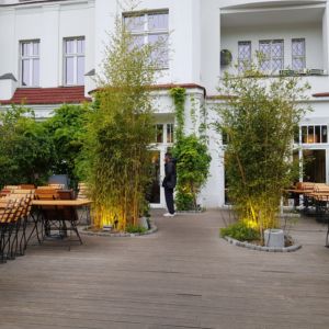 Atmosphäre: Holzerne Einrichtung in erfrischendem Flair inmitten von Bambuspflanzen