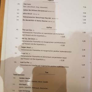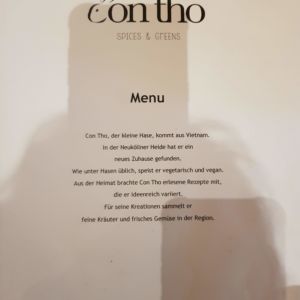 Das Con Tho ist ein vegan, vegetarisches Restaurant in Neukölln in der Nähe der Hasenheide. Con Tho ist vietnamesich für Hase – passend zur location. Auf der Karte stehen hier mal nicht die typischen Speisen, die man sonst beim Vietnamesen in Berlin findet, sondern eher eine kleine Auswahl von neu interpretierten Klassikern. Es gibt kleine und mittelgroße Vorspeisen, die ideal zum Teilen sind. Bei den Hauptspeisen kann man im Grunde zwischen drei Gerichten wählen, die es jeweils in drei Ausführungen – einer klassischen und zwei kreativen – gibt: Com Tam, die vietnamesischen Version vom Bibimbap aus Korea, dem Reismehlcrêpe Banh Xeo und der Hue Bowl, einer Zitronengras-Annatto-Suppe. Alle Speisen sind vegetarisch, teils vegan. Es wird mit Tofu und Seitan gekocht. Die herrlich angelegte, gut bepflanzte Terrasse vorm Eingang lädt zum Verweilen ein.