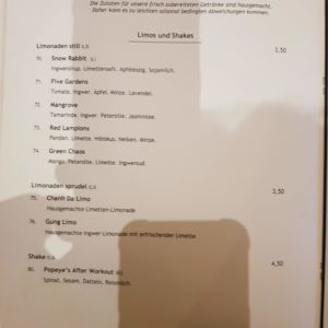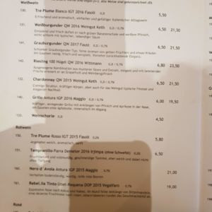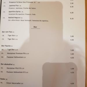 Auszug aus der Speisekarte (Stand 08. Mai 2019):