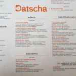 Das Datscha ist ein russisches Restaurant im Gräfekiez in Kreuzberg. Auf der Speisekarte findet man neben einer großen Auswahl an Frühstücksoptionen (serviert bis 16 Uhr), auch modern interpretierte Klassiker aus der russischen Küche: die Rote-Bete Suppe Borschtsch, russische Pfannkuchen Blinis und die Teigtaschen Wareniki mit vegetarischer oder Fleisch-Füllung. Außerdem gibt es ein wöchentlich wechselndes Lunch-Menü und zusätzliche Speisen als „Empfehlungen“.