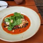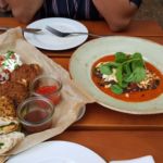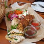 Zum Hauptgang bekamen wir das All inclusive, die Wochenempfehlung, mit Falafel, Schafskäase, Hummus, gegrillte Zucchini und Fladenbrot und das Golubzi: Wirsingrouladen mit Buchweizen.