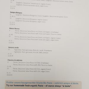 Auszug aus der Speisekarte (Stand 27. Mai 2020):