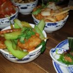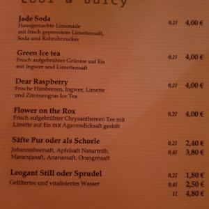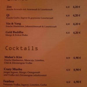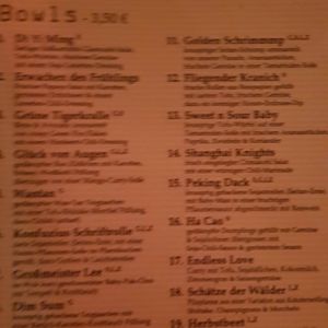 Wir besuchten das Restaurant an einem Dienstag Abend gegen 19 Uhr und hatten vorab einen Tisch reserviert. Wir bestellten zunächste zwei alkoholfreie Bier und ein Glas Rot- bzw. Weißwein. Wir entschieden uns zu viert zehn Bowls zu teilen und suchten querbeet aus der ersten Seite der Speisekarte aus.