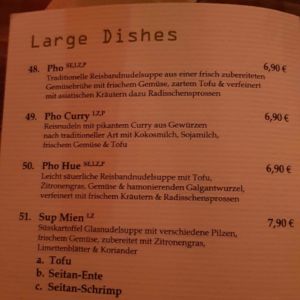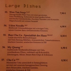 Auszug aus der Speisekarte (Stand 03. März 2020):