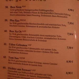 Speisekarte: Vegane kantonesische Tapas im 5 Elements – Kreuzberg