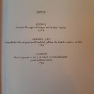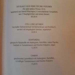 Der blaue Fuchs ist ein georgisches Restaurant am Kollwitzplatz im Prenzlauer Berg, das erst im Frühjahr 2019 eröffnet hat. Den Namen hat der Besitzer von einem DDR Kinderbuch. Ich war noch nie in Georgien und hatte bis dato auch noch nie georgisch gegessen, die Speisekarte scheint aber georgische Klassiker anzubieten. Als Vorspeisen gibt es allerlei Pasten mit Blattspinat, Bohnen oder Auberginen, die mit Walnüssen und Koriander zubereitet werden. Unter den Hauptgerichten findet man neben Lamm oder Hähnchen auch vegetarische Khachapuri – überbackenes Hefebrot – oder Khinkalis – georgische Dumpling. Dazu werden ausschließlich georgische Weine serviert.