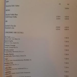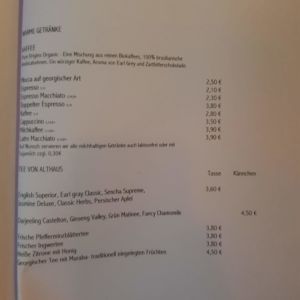 Auszug aus der Speisekarte (Stand 17. August 2019):