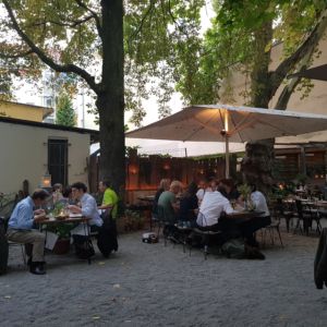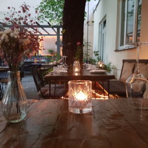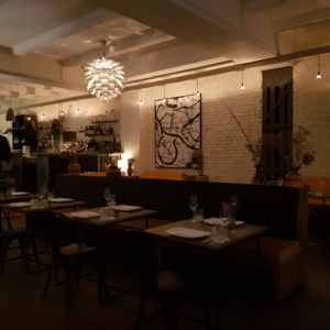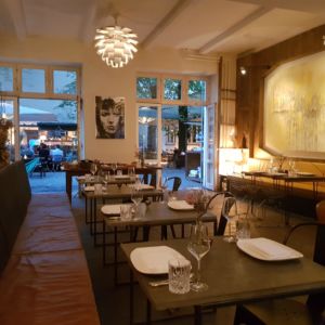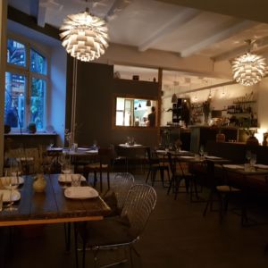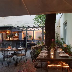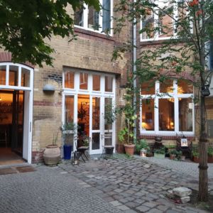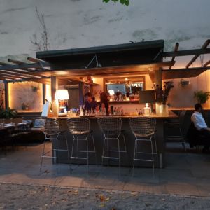 Versteckt im Hinterhof in der Nähe des Zionskirchplatz, stößt man kaum zufällig auf das heimlichTreu. Hat man seinen Weg bis zum zweiten Hinterhof zurück gelekt, wird man hier in entspannter Atmosphäre begrüßt. Es gibt eine große, ruhige Außenterrasse und der Innenraum ist hell und mit langen Tischen bestückt. Die Getränkekarte läuft unter „fließend“ – mit ausgefallenen Cocktailkreationen, die Weinkarte unter „gepresste“ und das Menü heißt „bissig“. Das heimlichTreu kocht noch dem Sharing-Prinzip: alle Speisen werden auf Tellern zum Teilen serviert. Unter den Speisen finden sich Fleisch und Fisch, aber auch vegetarische Optionen wie Salate, Fenchel und alle Beilagen. Die Beilagen zu den Hauptspeisen können selbst ausgewählt werden.