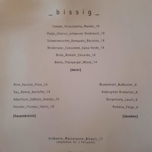 Auszug aus der Abendkarte (Stand 03. September 2018):