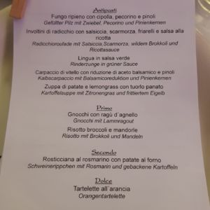 Auszug aus der Speisekarte (Stand 21. Februar 2020): Ich hab jedoch nur ein Foto des Menüs mit Fleisch gemacht.