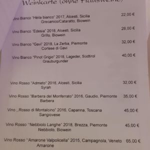Menüpreis: 65€ inklusive Wasser und 0,375l Hauswein