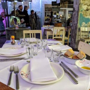 Wir besuchten das Restaurant mit einer Reservierung an einem Freitag Abend um 19:30 Uhr. Da das Menü immer gesetzt ist, mussten wir uns nur entscheiden, welchen Wein wir dazu trinken wollten: weißen Hauswein, ein Malvasia. Der Tisch war bereits gedeckt und es stand Focaccia und Olivenöl bereit.