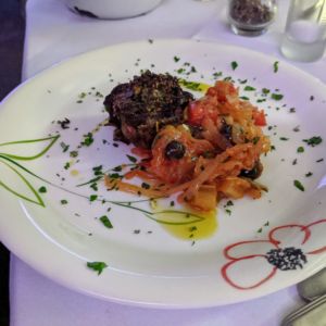 Als Antipasti bekamen wir zunächst fünf leckere Kleinigkeiten zum Teilen bzw. ich bekam meine eigenen Teller, weil ich die einzige Vegetarierin an diesem Abend war.