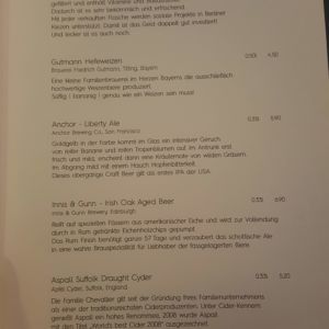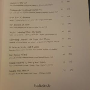 Auszug aus der Abendkarte (Stand 08. Juli 2018):