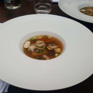 Die zweite Vorspeise bestand aus einer Frühlingsconsommé mit Créperoulade und Babymais