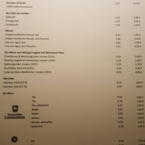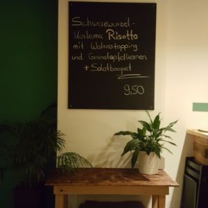 Wir besuchten das Restaurant an einem Donnerstag Abend gegen 20 Uhr und bekamen ohne Reservierung einen Platz. Wir bestellten zunächst ein Glas Apfelschorle und einen Kräutertee. Der Kellner war sehr freundlich und beantwortete all unsere Fragen zum Menü. Neben der Gerichte aus der Speisekarte, gab es an dem Tag zusätzlich ein Schwarzwurzel-Kurkuma-Risotto.