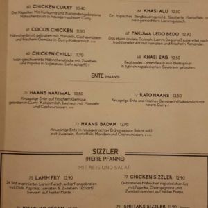 Auszug aus der Speisekarte (Stand 02. Dezember 2019):