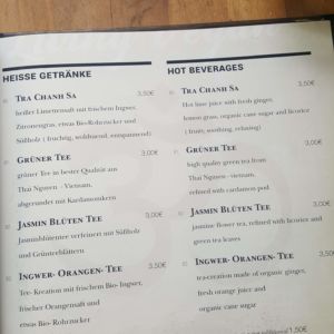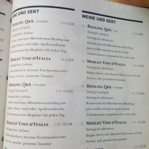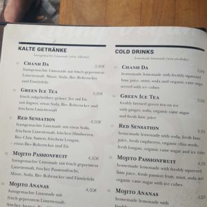 Auszug aus der Speisekarte (Stand 30. Mai 2018):