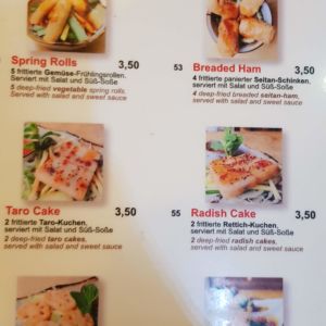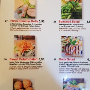 Speisekarte sunshine: Sommerrollen, Dumplings, Curry, Reisnudeln, Pho und mehr