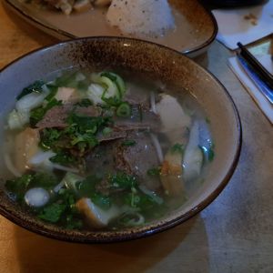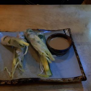 Wir besuchten das Restaurant an einem Donnerstag Abend gegen 19 Uhr und bekamen ohne Reservierung einen Platz. Wir bestellten jeweils einen frischen Zitronengras-Tee und zur Vorpeise die Seitan-Garnelen-Sommerrollen zum Teilen. Ich entschied mich für den Pho-Suppe mit Rindimitat und Tofu, meine Begleitung bekam ein Erdnuss-Gemüse-Curry.