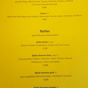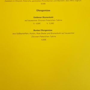 Speisekarte Taktiek: Hummus, Ofengemüse, Grünkern und mehr