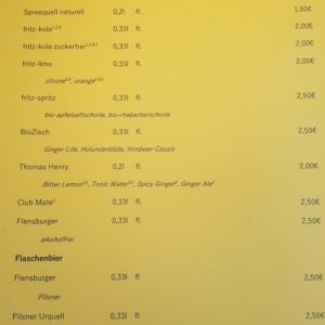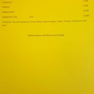 Auszug aus der Speisekarte (Stand 08. August 2018):