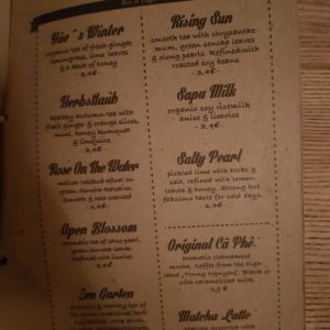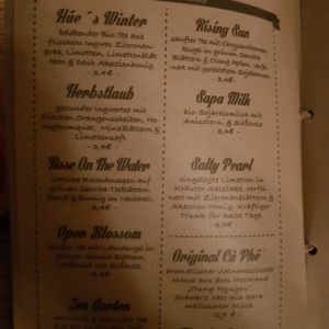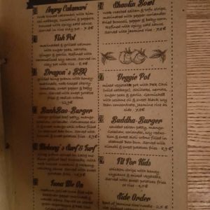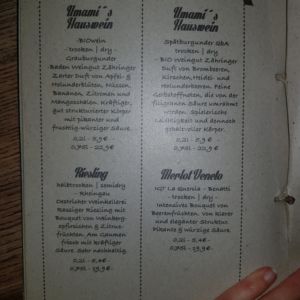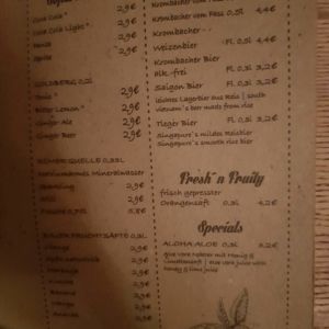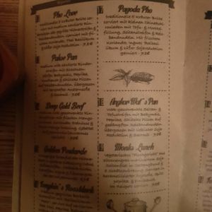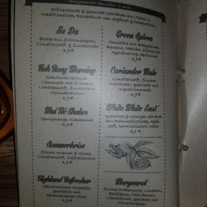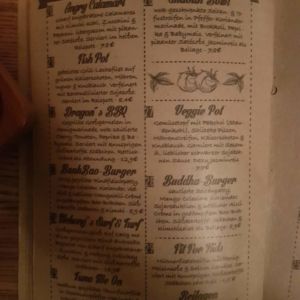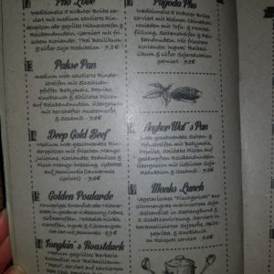 Auszug aus der Speisekarte (Stand 02. November 2018):