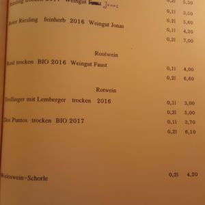 Auszug aus der Abendkarte (Stand 12. Juli 2018):