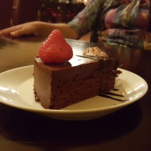 Und zum Nachtisch teilten wir uns noch ein Stück Schokokuchen.