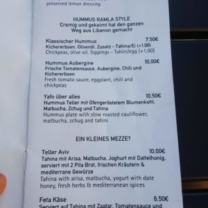 Für das aktuelle Menu, hier zur Webseite vom Yafo.