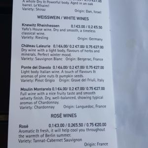 Wir besuchten das Yafo an einem Dienstag Abend gegen 18:30 und bekamen glücklicherweise noch einen Platz an einem der Tische draußen. Vorab bestellten wir ein Glas Rosé und ein Glas Weinschorle.
