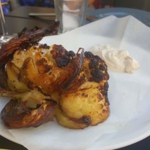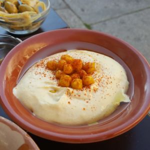 Wir entschieden uns für den Teller Aviv mit einer extra Portion Hummus, den gerösteten Blumenkohl und den Süßkartoffel Smash.