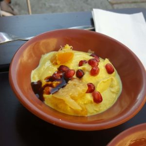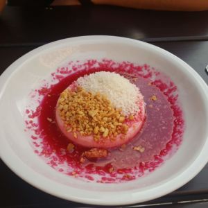 Und auch den Nachtisch konnten wir uns nicht entgehen lassen: einen Mousse Au Chocolat und Mahalabiya aus Palmachim (arabischer Milchpudding mit Rosenwassersirup, Kokosnussflocken und Erdnüssen).