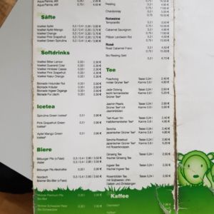 Auszug aus der Speisekarte (Stand 05. Juli 2019):