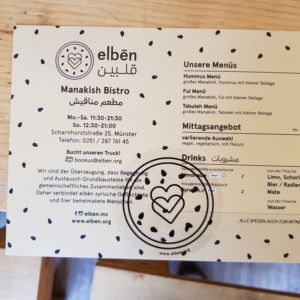 Das elbén in Münster bietet nicht nur hervorragendes Essen, sondern ist gleichzeitig auch ein Sprungbrett für syrischen Flüchtlingen. Elbén bedeutet „zwei Herzen“ – hier sollen Herzen auf kulinarischem Weg miteinander verbunden werden. Initiator der Idee Nedal Georges startete das Integrationsprojekt 2016 mit einem Foodtruck. Inzwischen gibt es das Restaurant in der Nähe des Aasees.